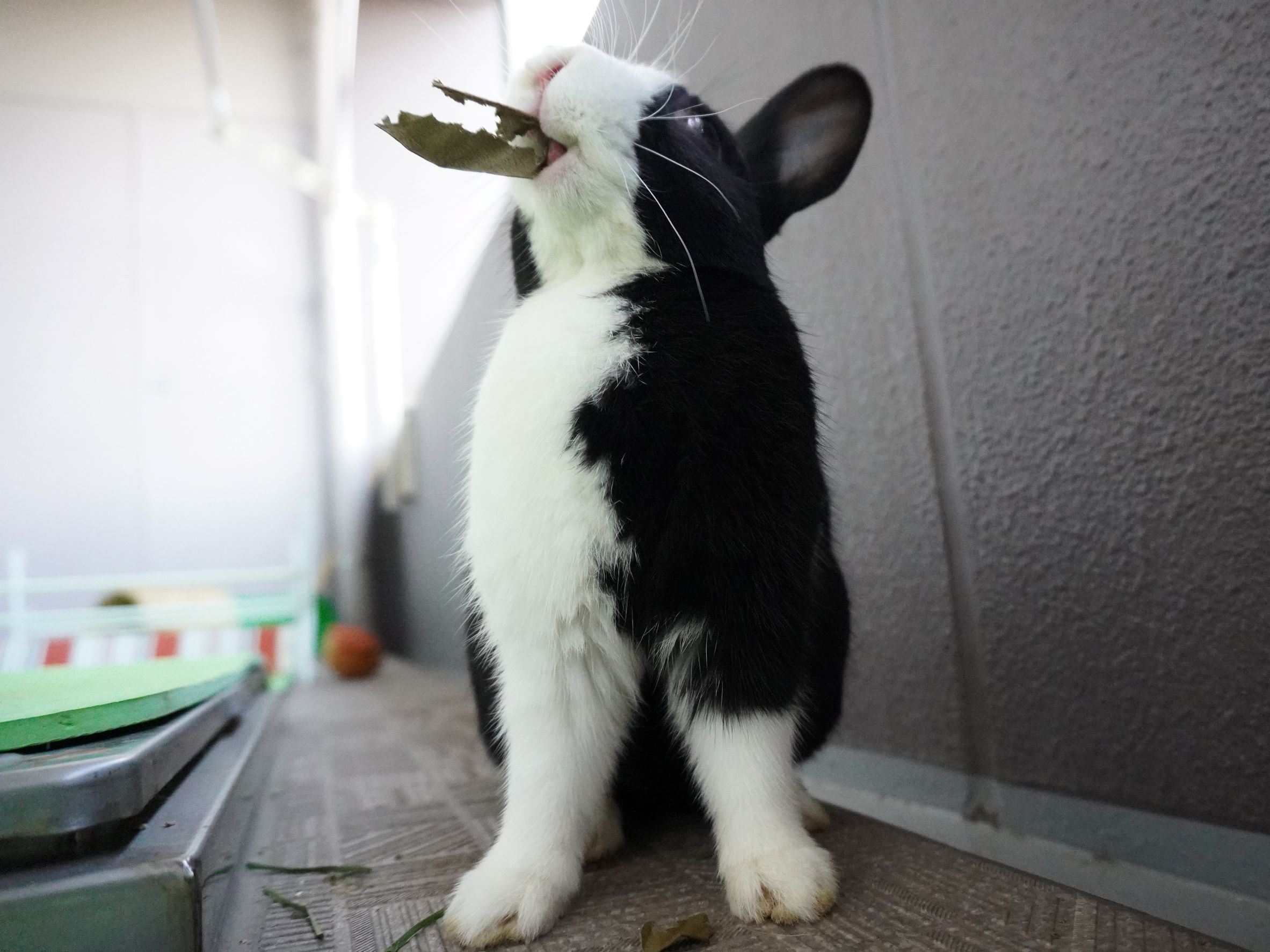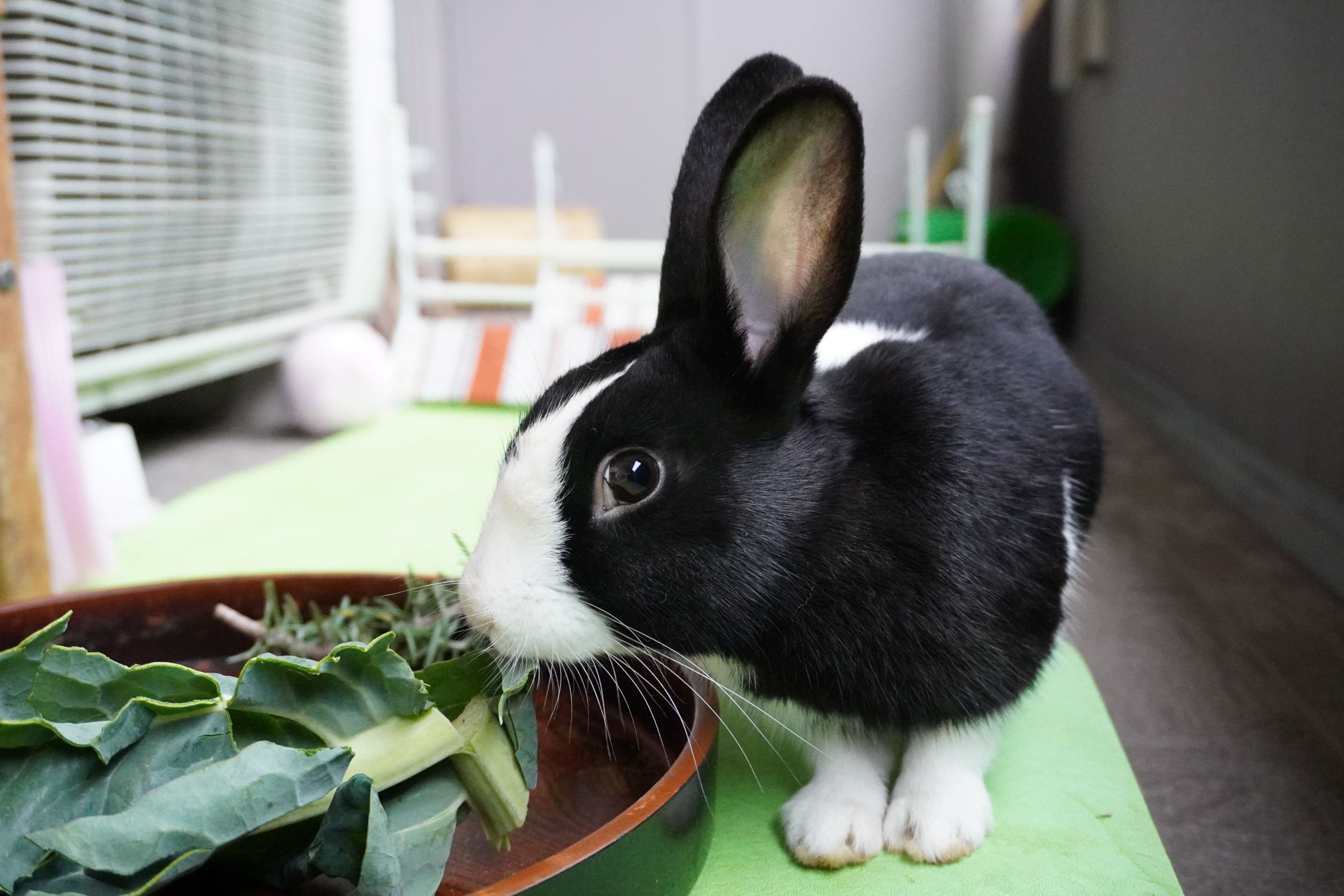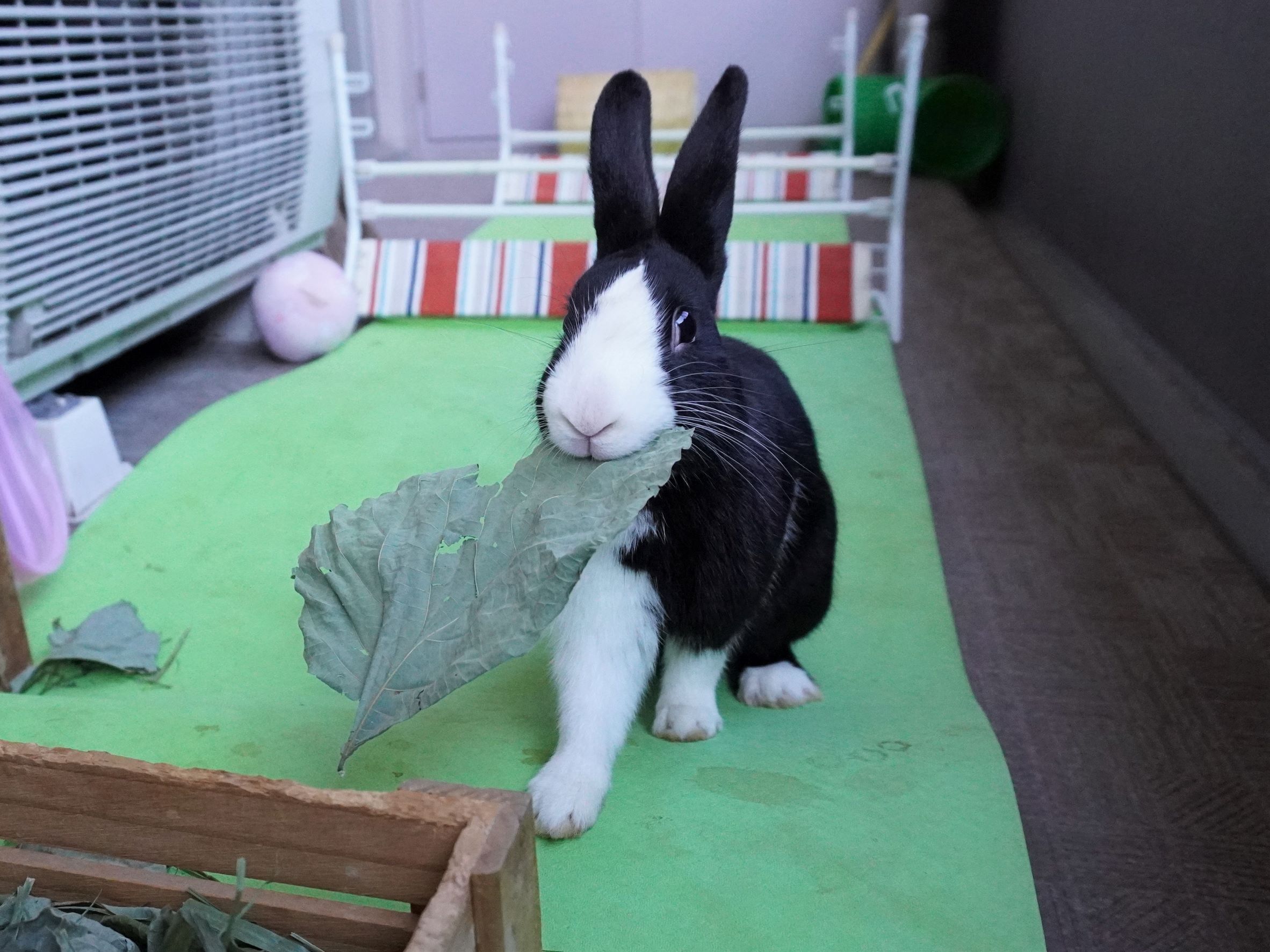 白うさぎのピョンタ君の里親さまからブロッコリーの葉っぱの差し入れをいただきました