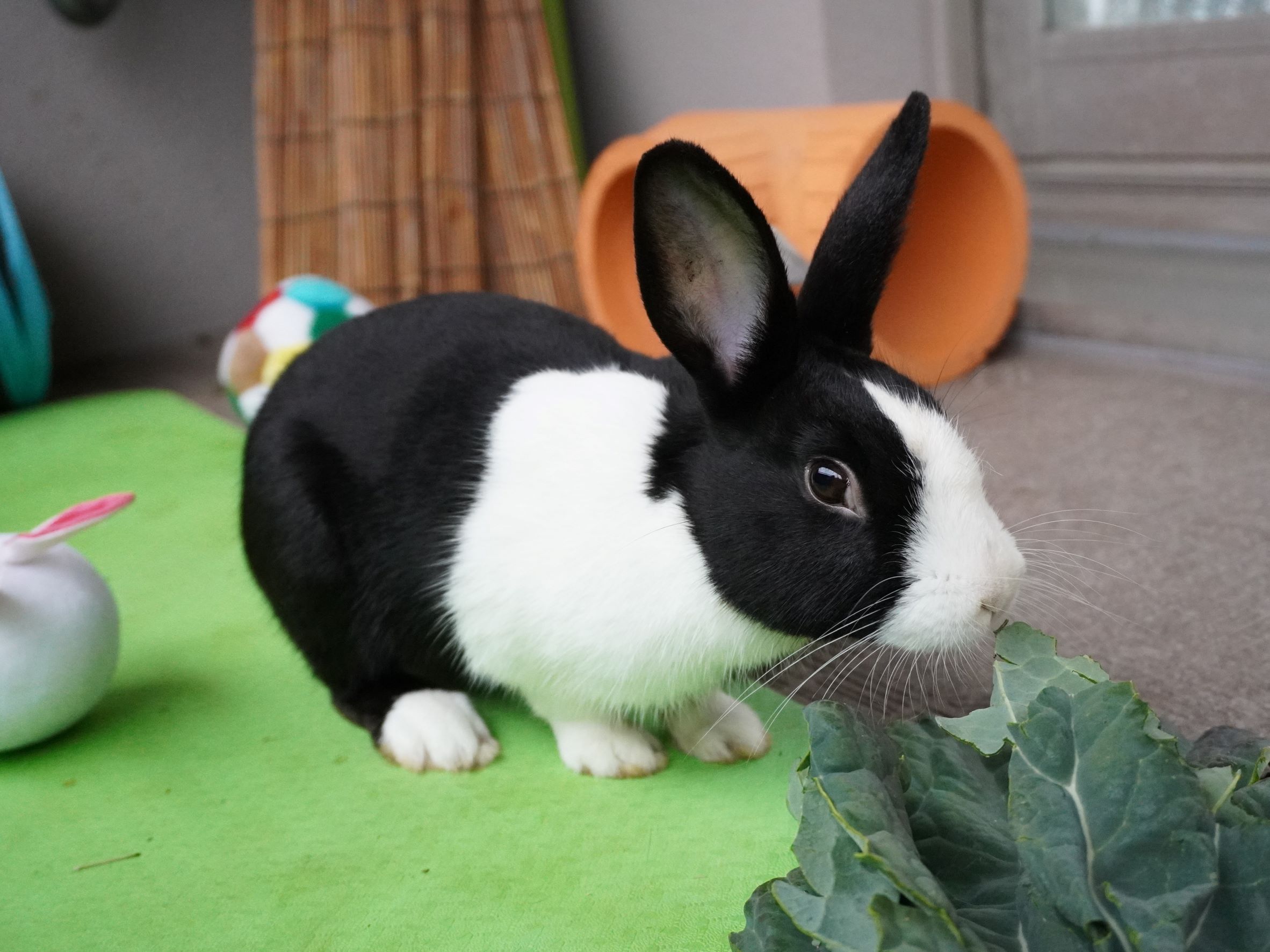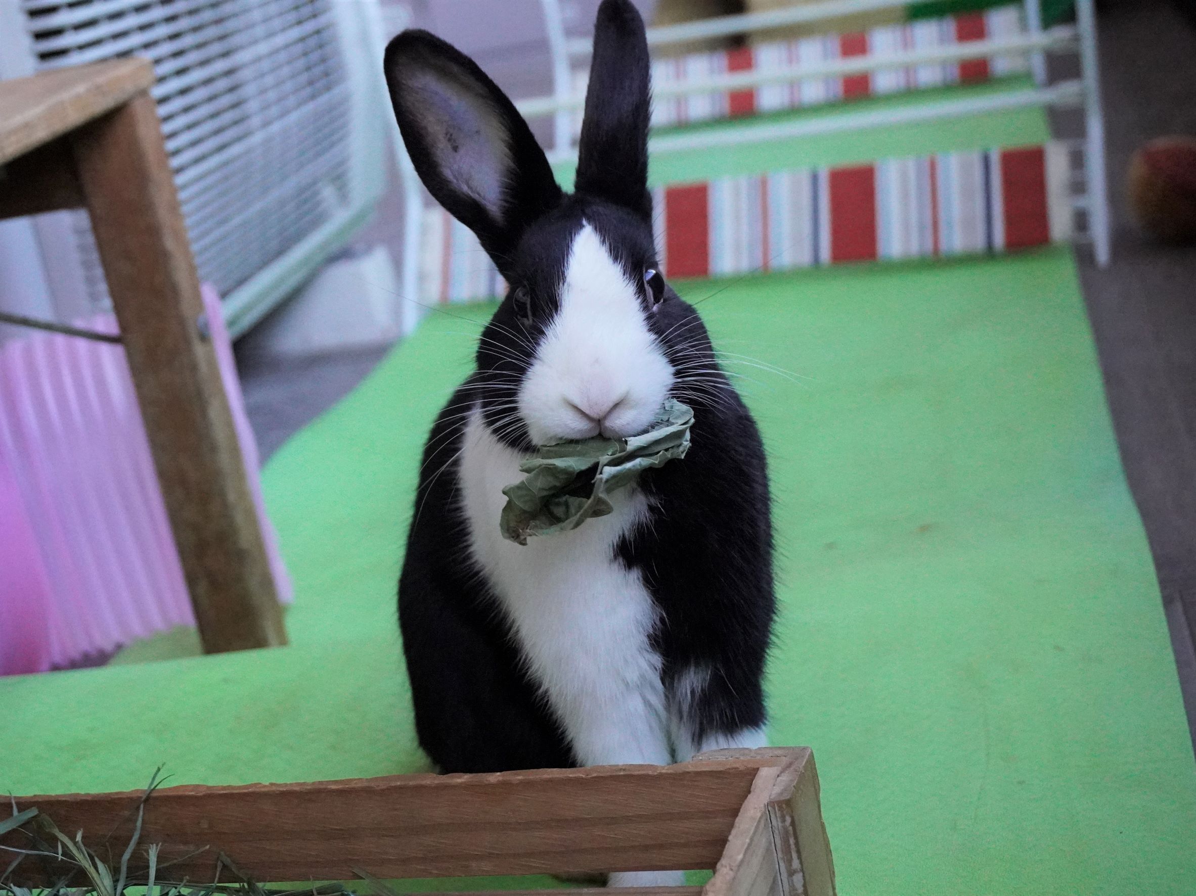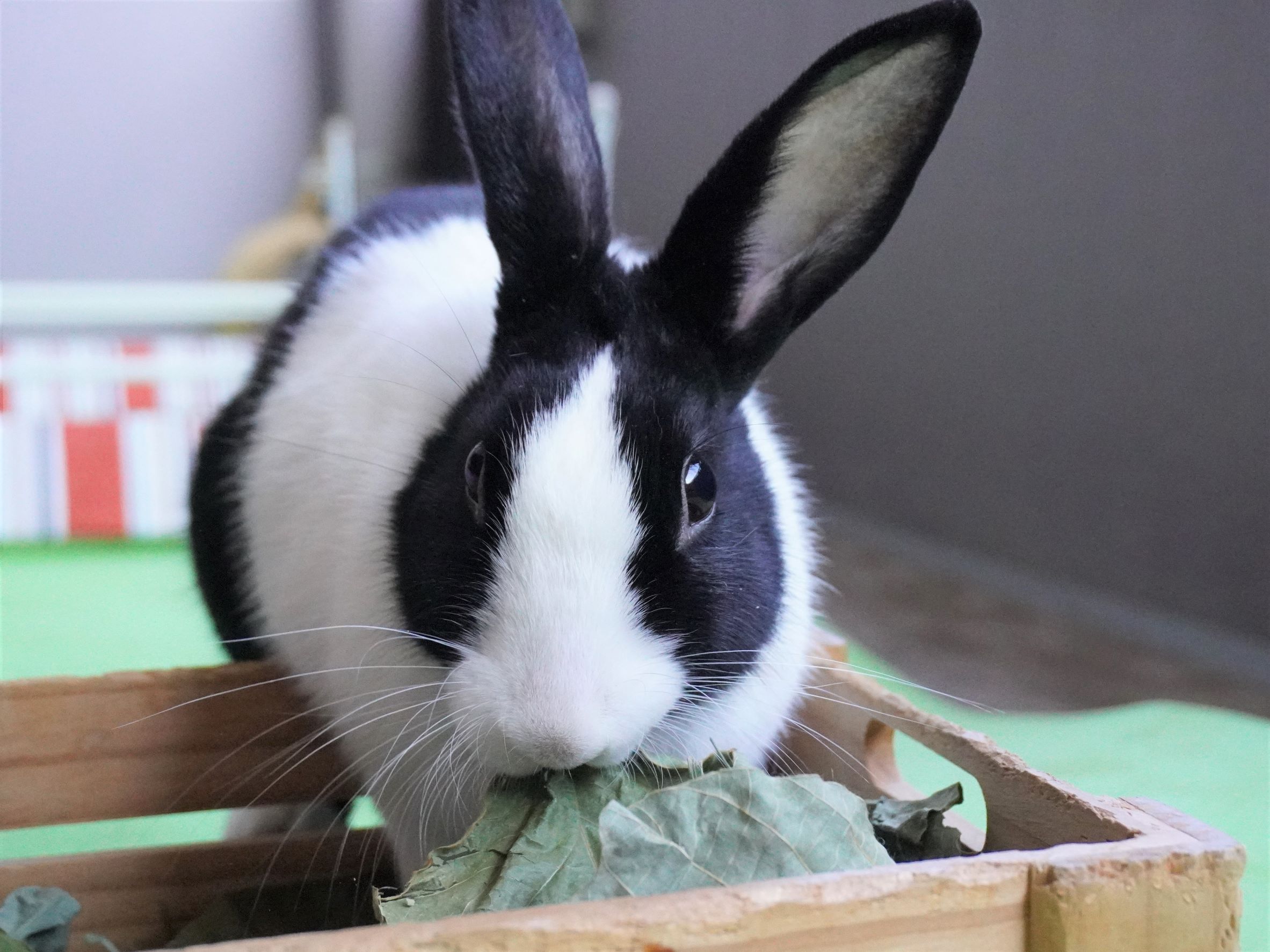 白うさぎのピョンタ君の里親さまからブロッコリーの葉っぱの差し入れをいただきました