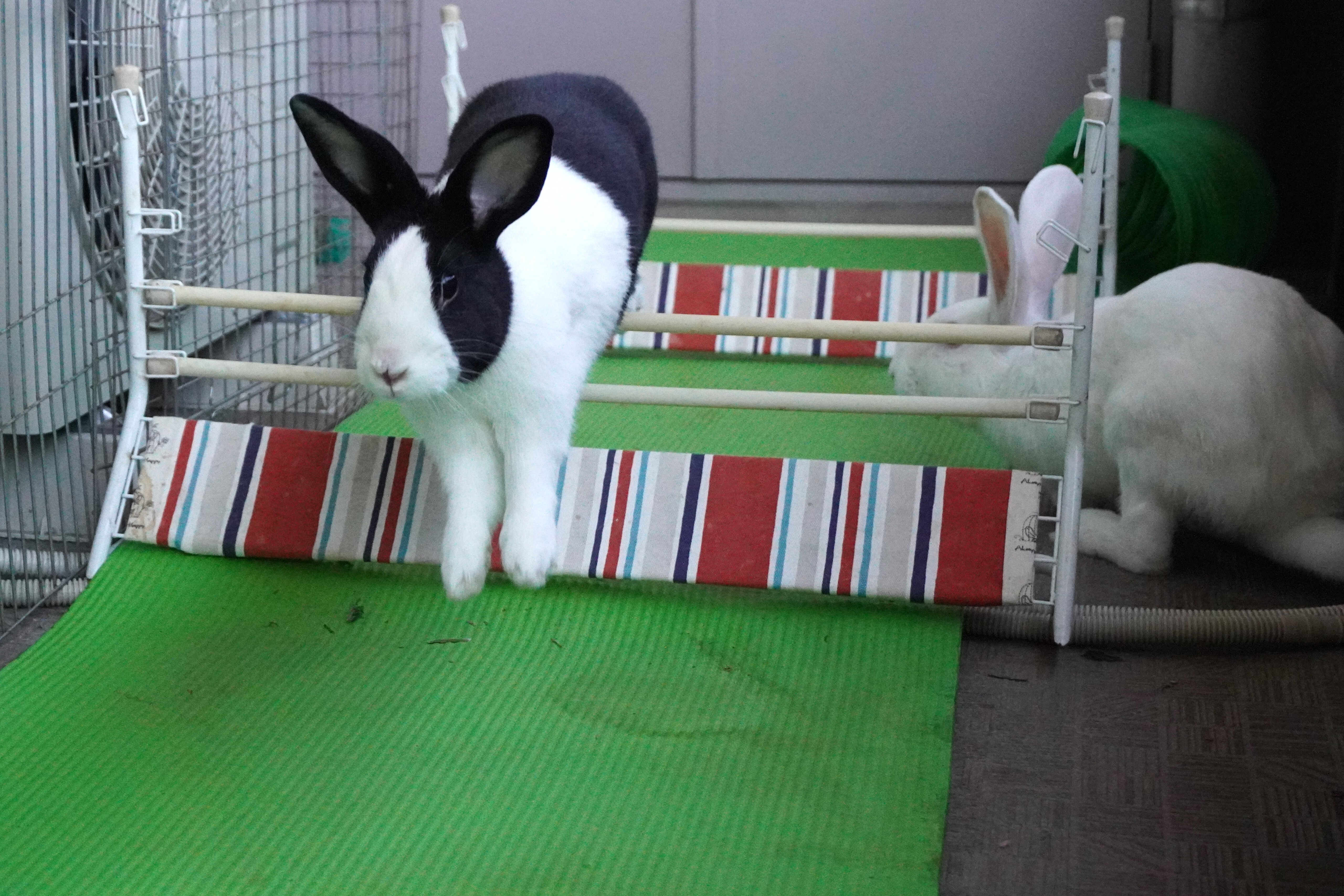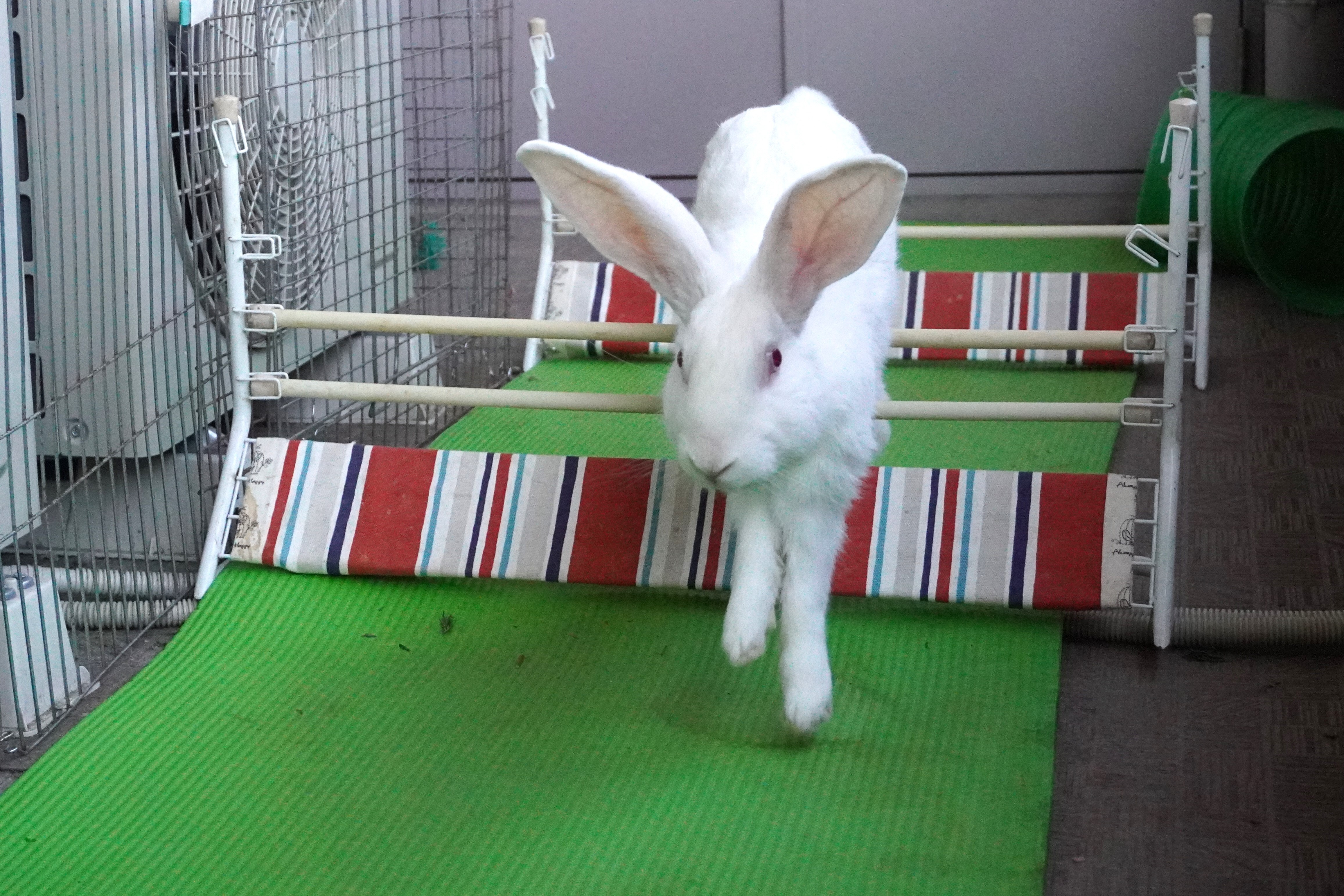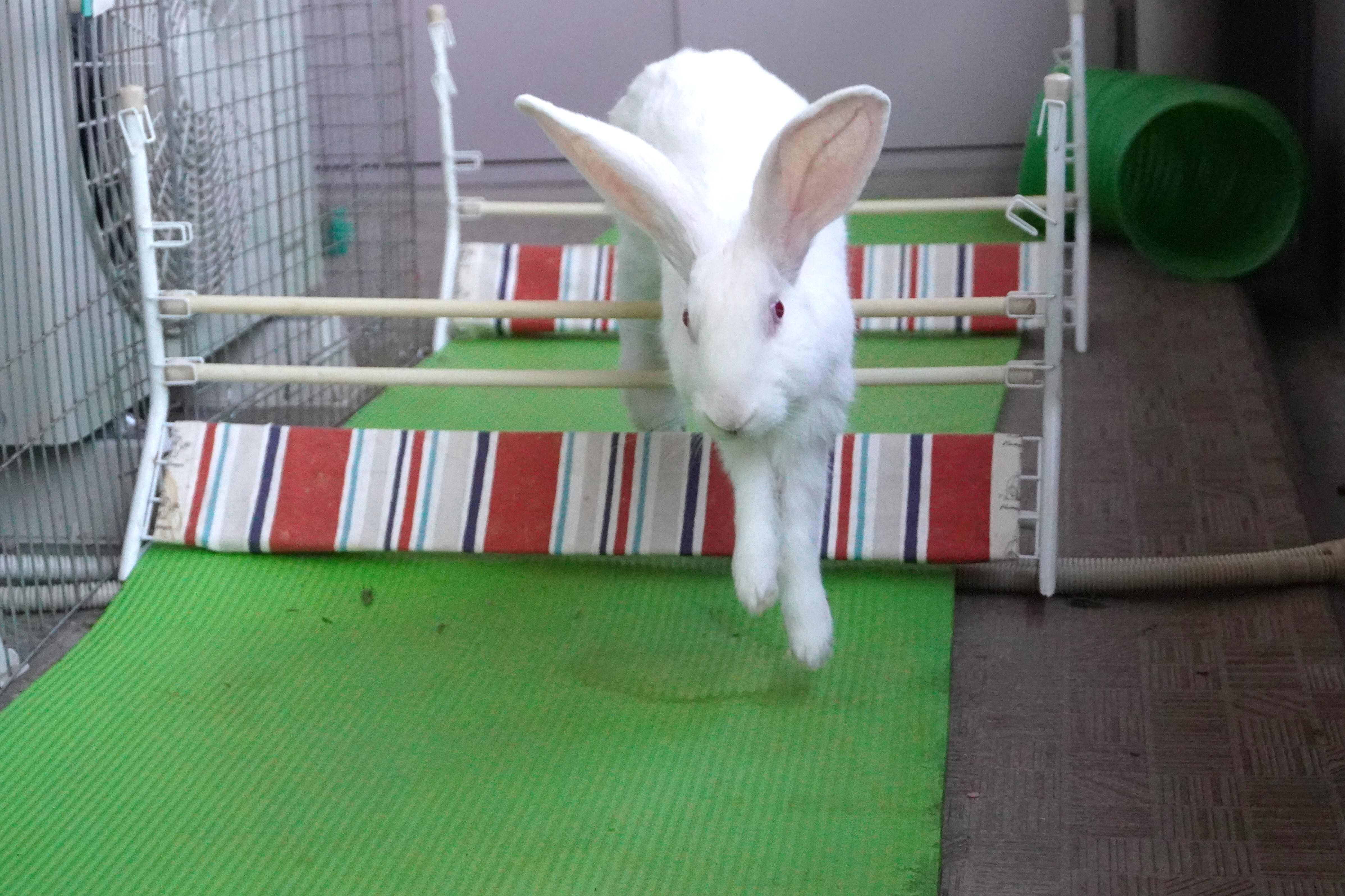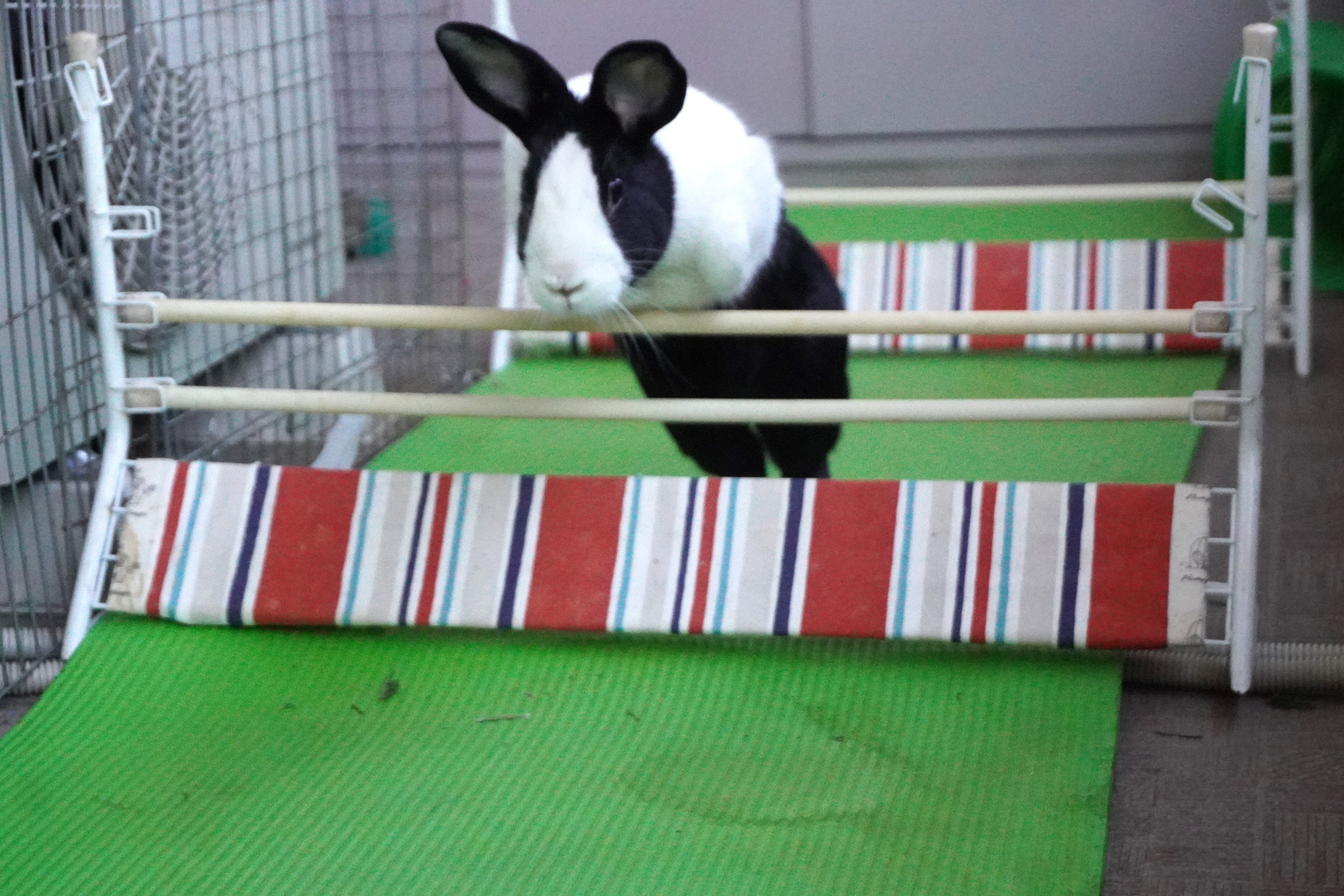 るりちゃんは反対側に行っちゃって、いないんですが、何往復もハードルを跳んでみせる、