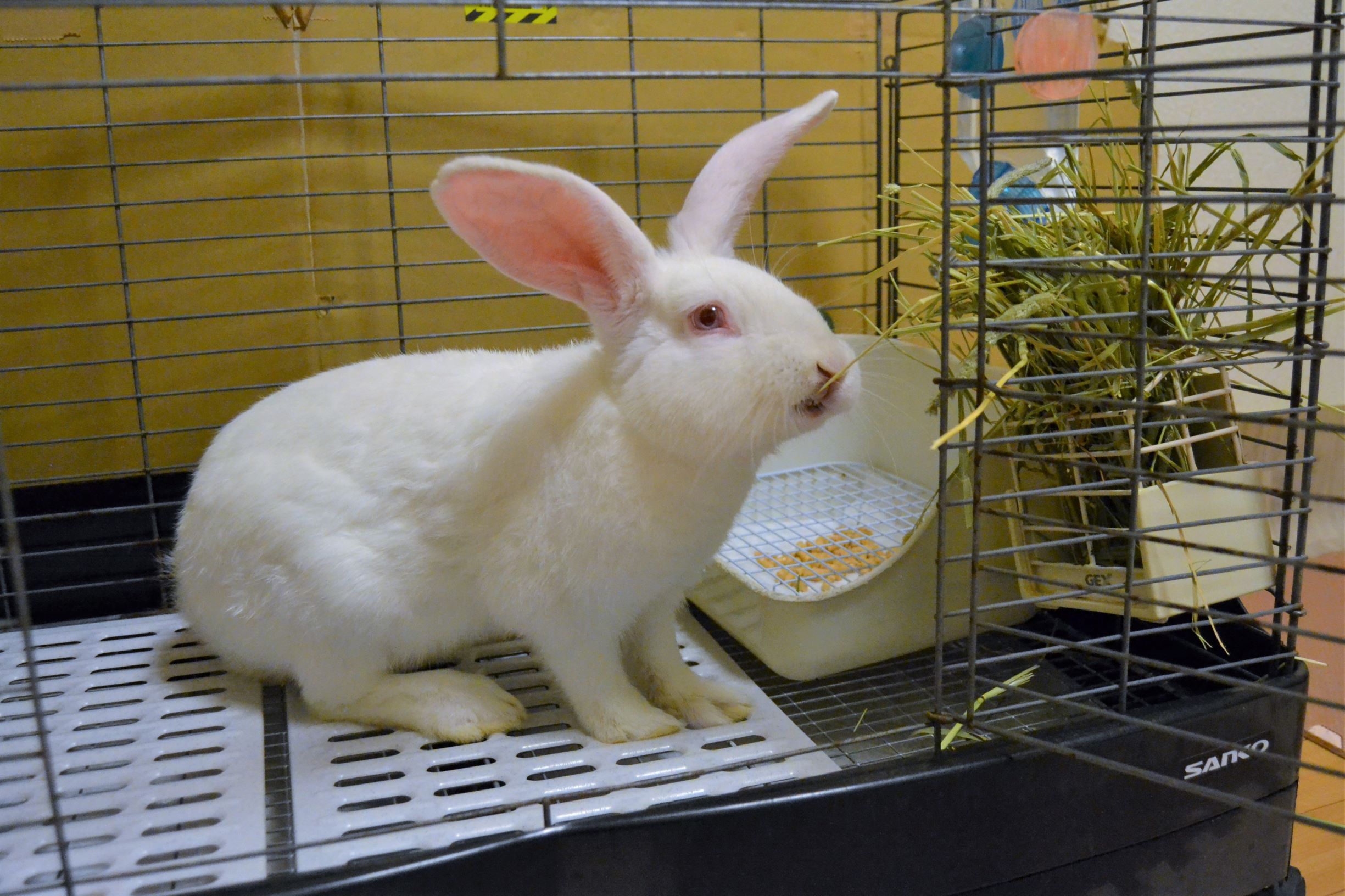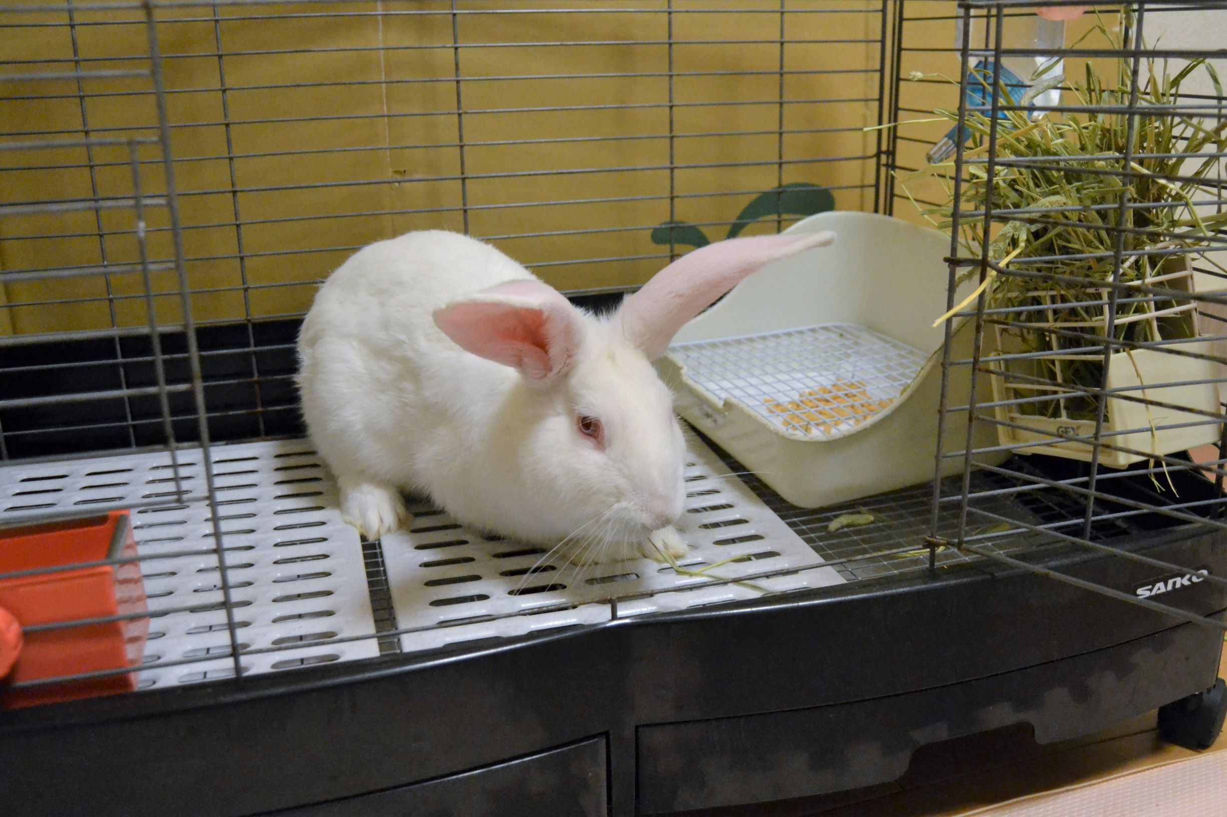 2021年03月26日 お客さま♪ 本日、お客さまがやって参りました。夜遅くの到着となりましたが、動じる様子もなく。丸顔のイケメン君です。牧草を入れたら、早速、お召し上がりに(≧▽≦)お気に召したようです。今日はもう遅いから、探検は明日のお楽しみですよ。聞き分けのいい、お利口さんです白うさ君、我が家で1週間、お家うさぎさん修行の予定です。 「うさぎ 里親募集」カテゴリの最新記事